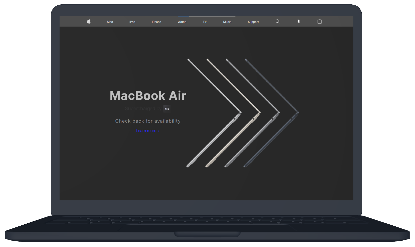 A clone of the Apple website's homepage and MacBook page from 2020. This project includes the integration of a night mode feature, enhancing the user experience. developed using HTML, CSS, and JavaScript, ensuring a faithful reproduction of the original design. With meticulous attention to detail, the website delivers an immersive and visually appealing experience for users, resembling the renowned Apple website of 2020